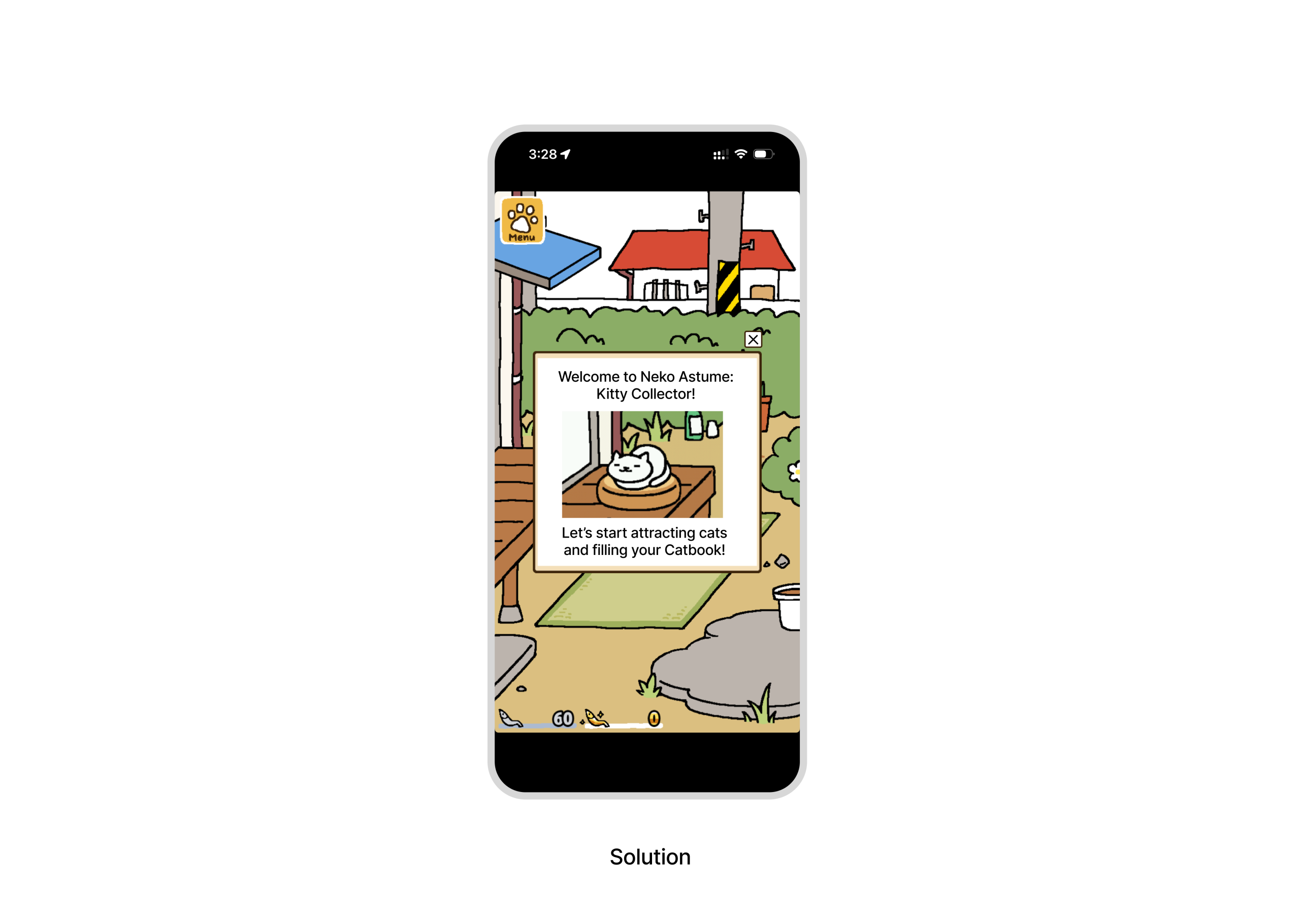The game is designed to somewhat replicate the actual life pattern of cat lovers, where cat lovers aren’t required to do a lot for the cats, like taking them out for walks or bathing them as with dogs. The game is designed specifically in Kawaii art, a famous Japanese art style known for its cute aesthetics, which triggers the ‘baby schema’ phenomenon in the user’s brain, which further triggers the emotion of cuteness. The game is designed to encourage sweet play, just like it is in actual life as a cat lover. However, at the same time, the game discourages screen-on time. Thus, it maintains a healthy play time for users without strong visual graphics for lesser eye strain and cognitive load.