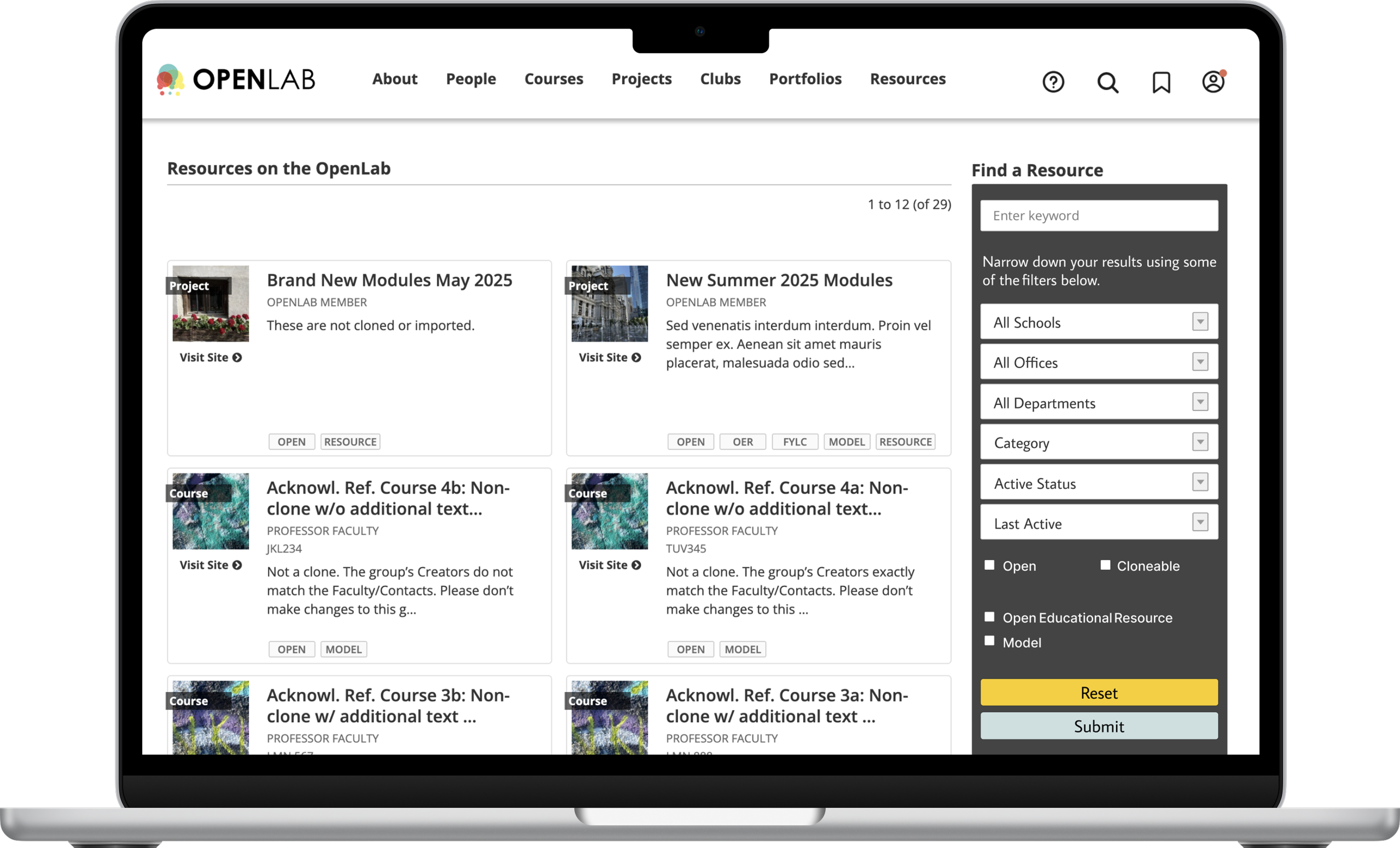 Tasked with doing an accessibility audit of OpenLab City Tech’s Directory Pages (Courses, Projects, Clubs, Portfolios and Resources pages), our goal was to provide solutions to the visual design and accessibility issues we discovered within the audits conducted.
