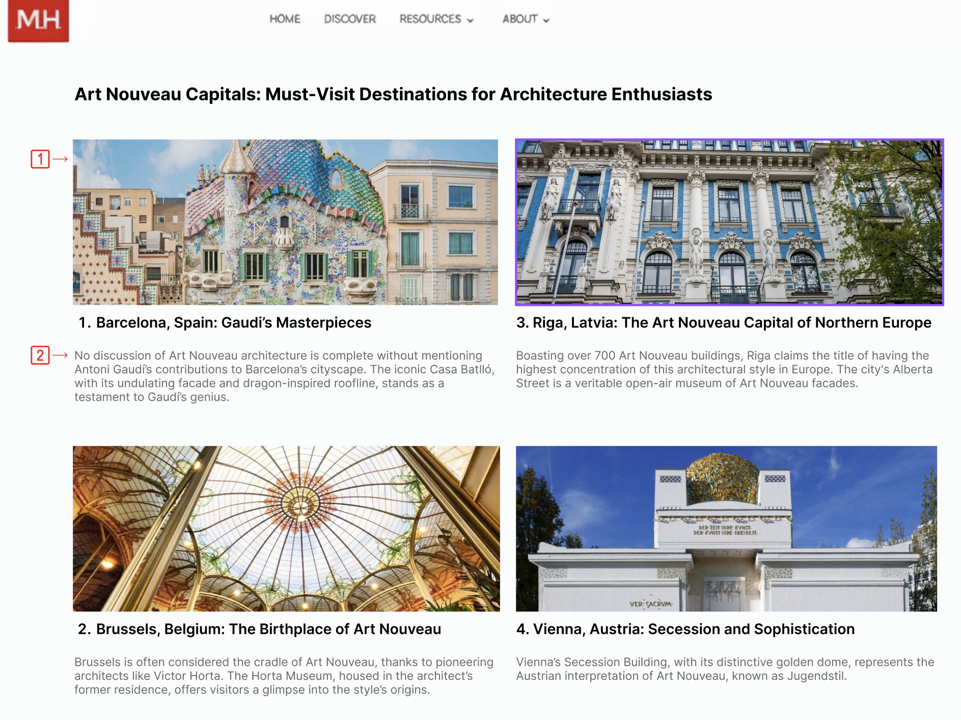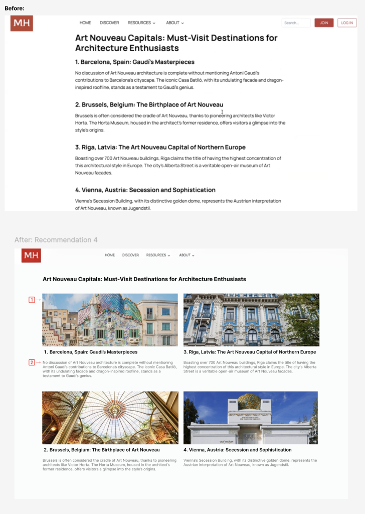 - Images are needed to help the users visualize the artistic concepts (Ex: Pictures representing Art Nouveau)