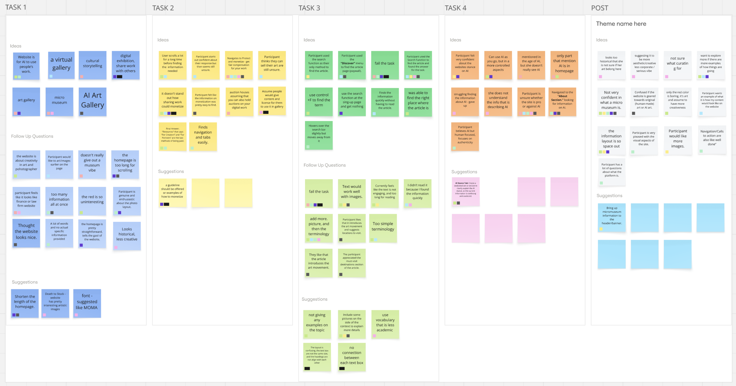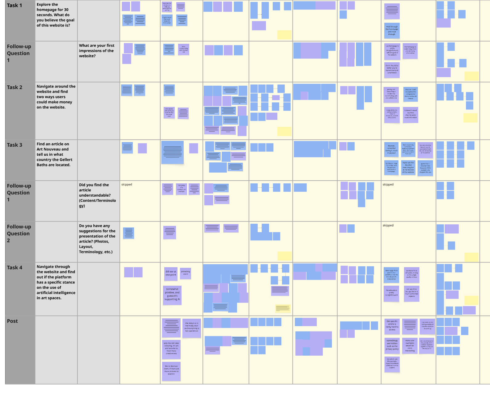 As a team, we reviewed our notes, data and footage and created a Miro board where we collected and organized all of our results in order to identify the top issues found in MagnificentH. This strategy helped us realize which parts of the website needed our attention the most.