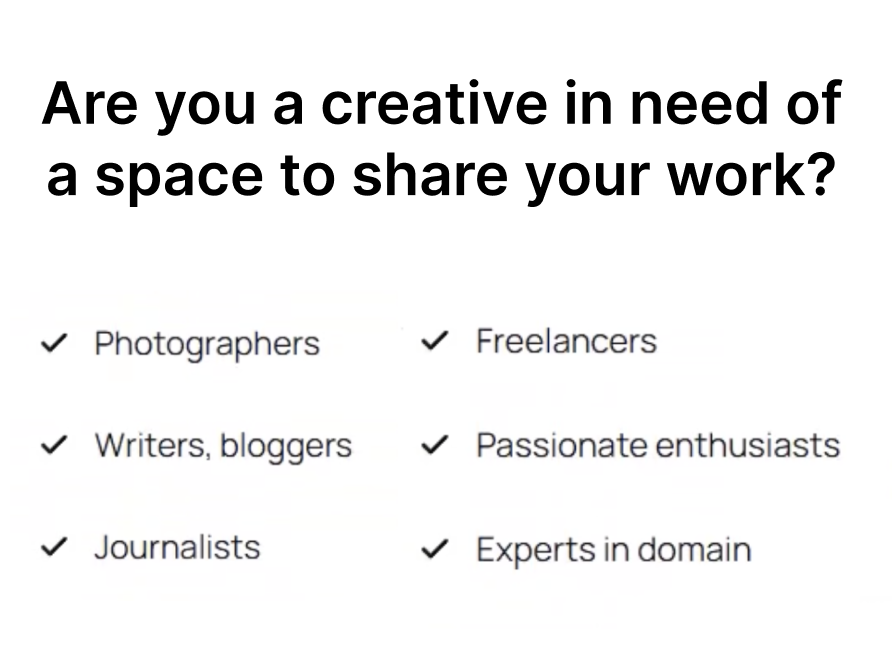 - New titles: “Are you a creative in need of a space to share your work?” and “Are you a company that is in need of more media?”