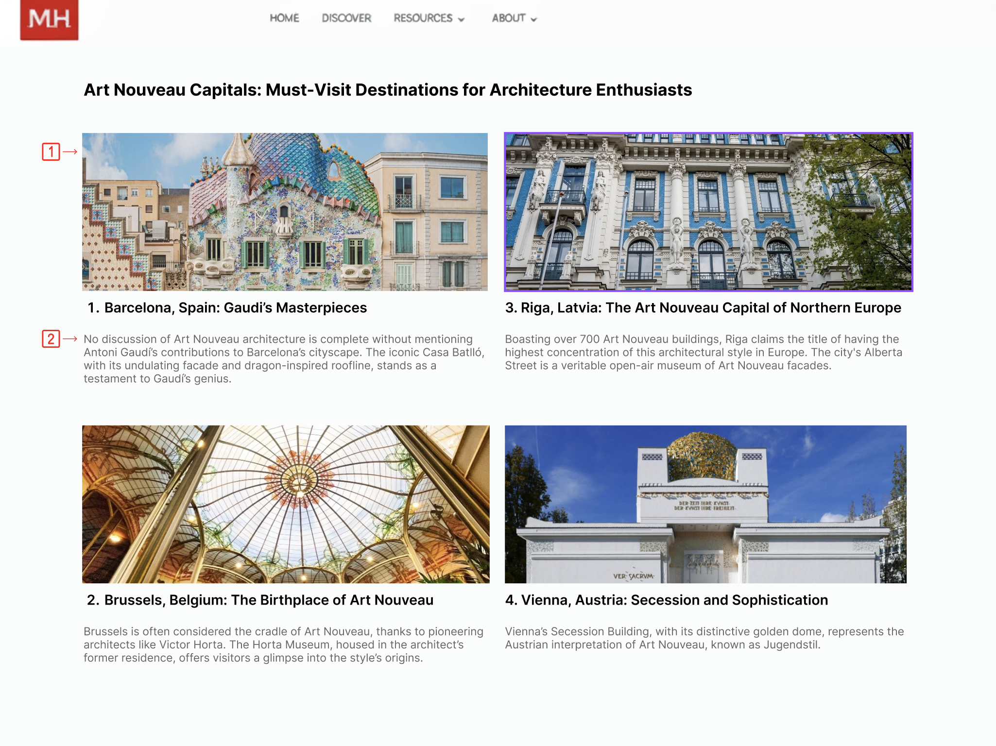 - Images are needed to help the users visualize the artistic concepts (Ex: Pictures representing Art Nouveau)