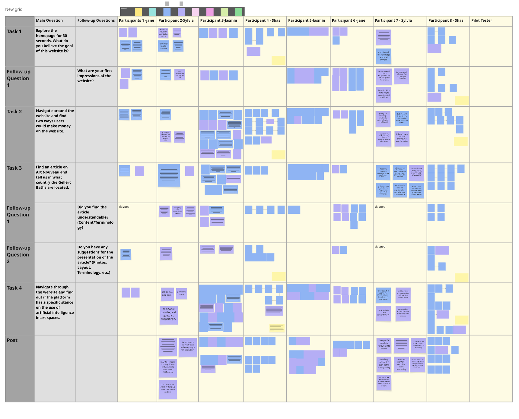 As a team, we reviewed our notes, data and footage and created a Miro board where we collected and organized all of our results in order to identify the top issues found in MagnificentH. This strategy helped us realize which parts of the website needed our attention the most.