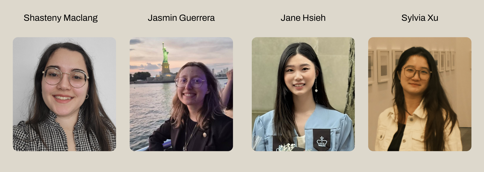 Our team is made up of four UX researchers from Pratt Institute: Shasteny Maclang, Jasmin Guerrera, Jane Hsieh, and Sylvia Xu. We bring expertise in user research and design strategy, and we collaborated closely with our clients to understand their needs and provide recommendations based on our research.