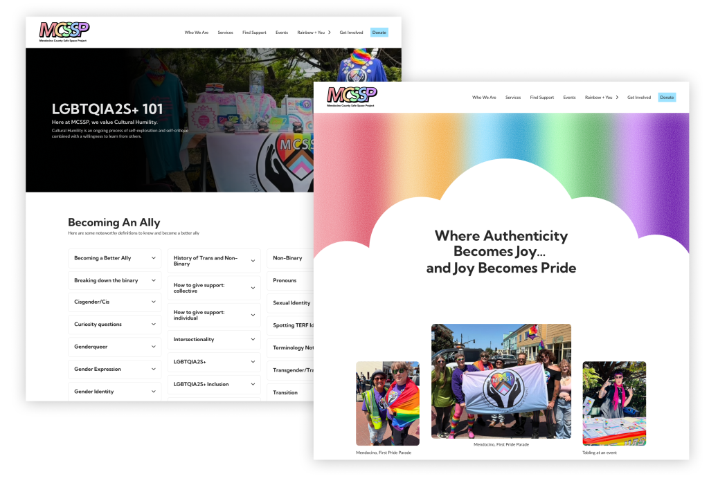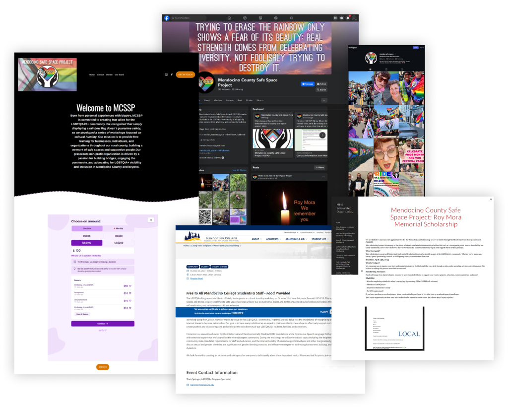 When we were introduced to the Mendocino County Safe Space Project through our professor Rachel Ginsberg, we were really excited to see how we could mould their site into something they were proud of. What we didn’t anticipate was how hard it would be to gather everything to make a cohesive site that would impact many queer lives.