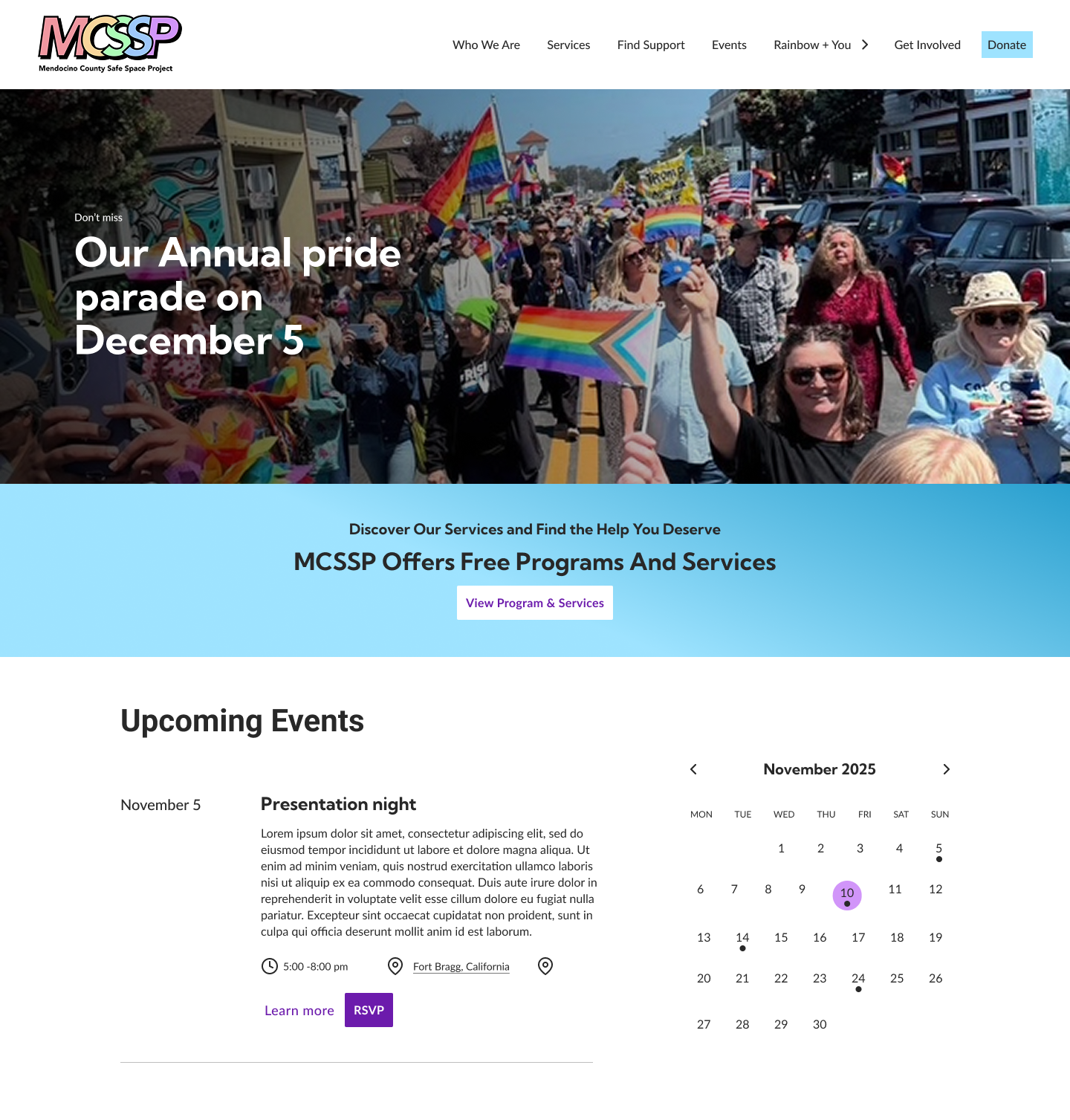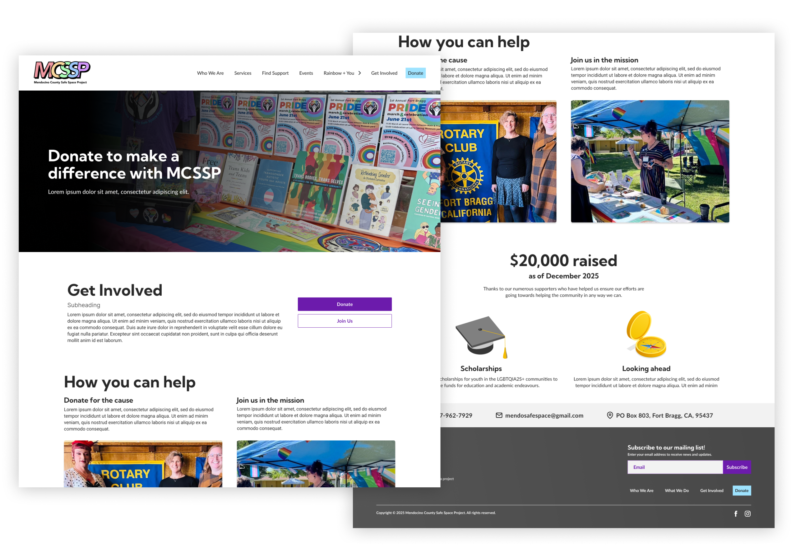 Design a website that increases the visibility of MCSSP’s impact in Mendocino by surfacing resources and reflecting community presence, thus driving engagement through participation and donation.
