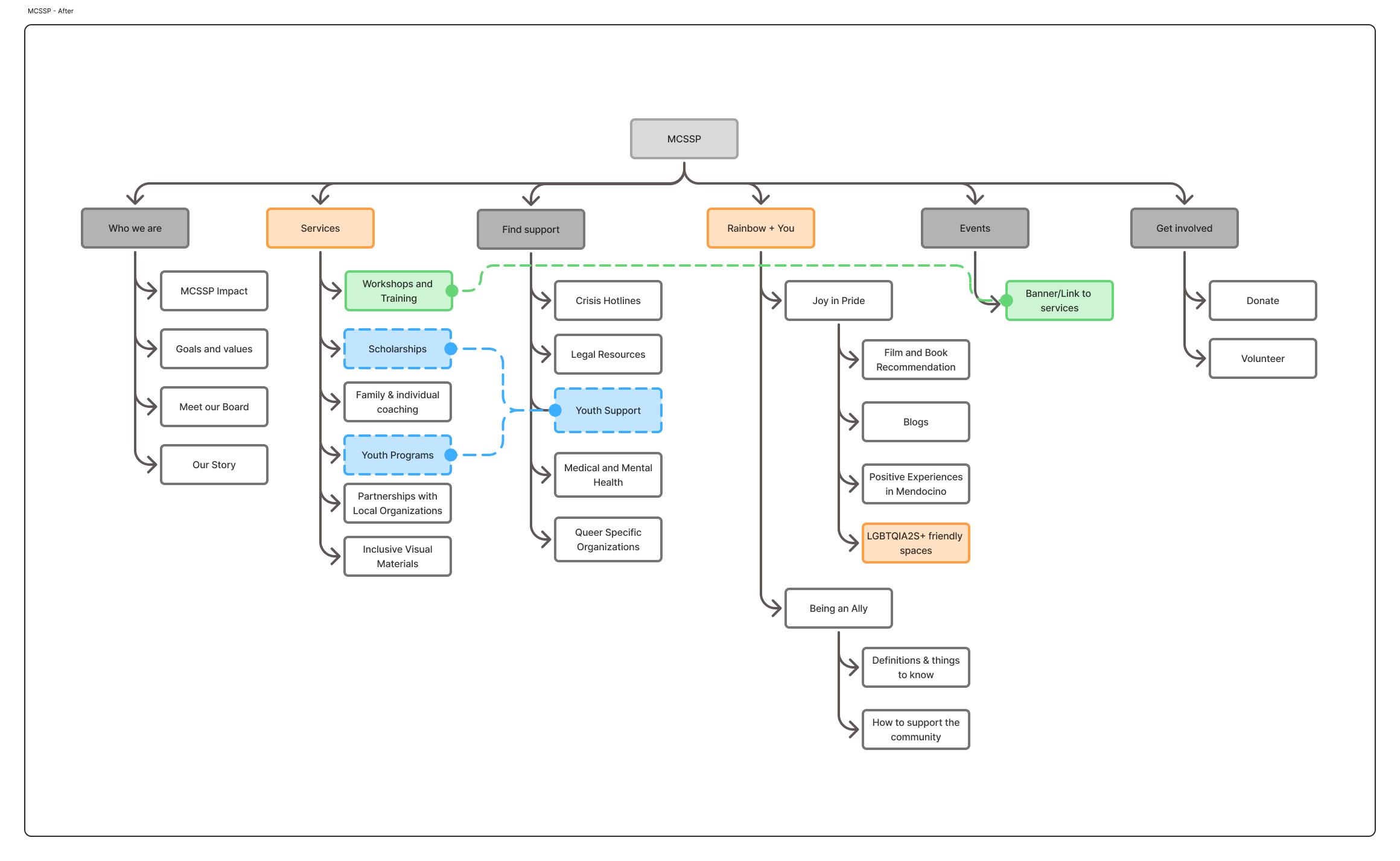 With the strategic direction as our north star, we went into mapping out what resources could be required, where backed by what we found during all the research. Gradually, we created a collective map that held MCSSP’s entire story in a way any user could follow.