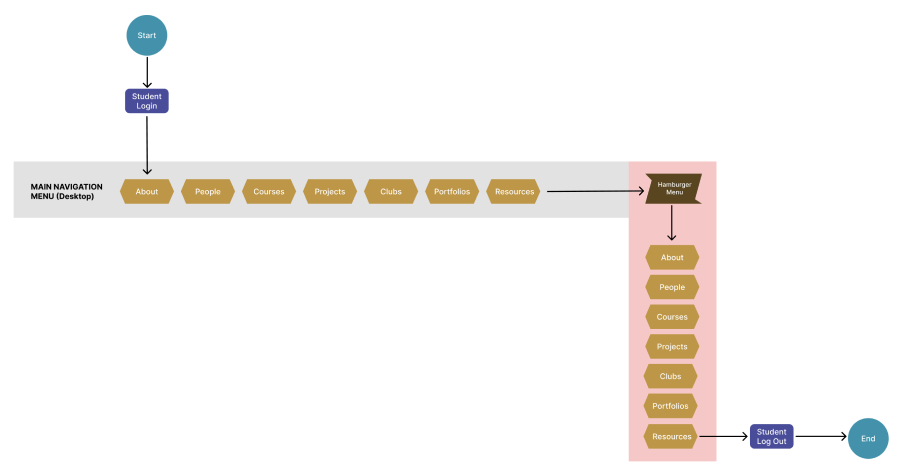 Our redesign was more of de-design as we took the route of simply removing the “hamburgered” menu. We provided the site with a cleaner look and feel, hoping to let students know all they need is a much more succinct list than previously suggested by the extra items. Also, as always, we corrected the color contrast issues found on this page as well.
