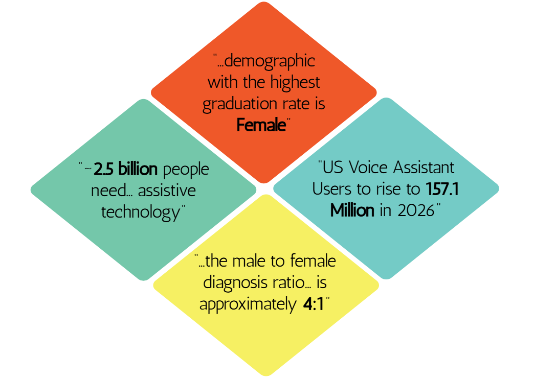 Further research led us to know that a growing number of people use assistive technology tools and software, whether disabled or not. Also (like many universities), we learned that across the CUNY system, the majority of graduates are female — the same population that is treated and diagnosed with both ADHD and ASD far less frequently than their male counterparts.