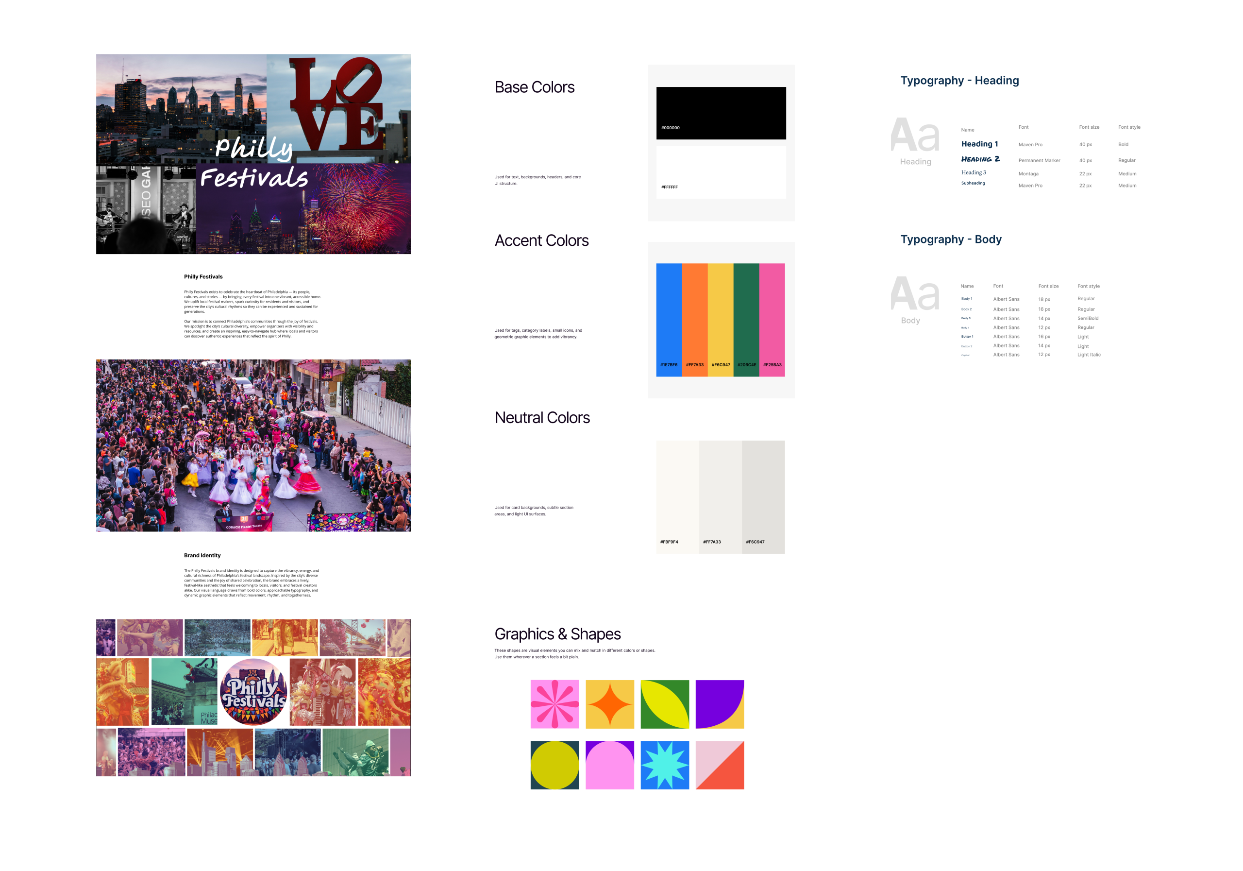 The goal of this project was to redesign the Philly Festivals website into a central hub that makes it easier for people to discover festivals, decide which ones to attend, and share the joy of these cultural experiences with others. Beyond discovery, we aimed to highlight the cultural significance of Philadelphia’s festivals while creating more meaningful support for the producers behind them.