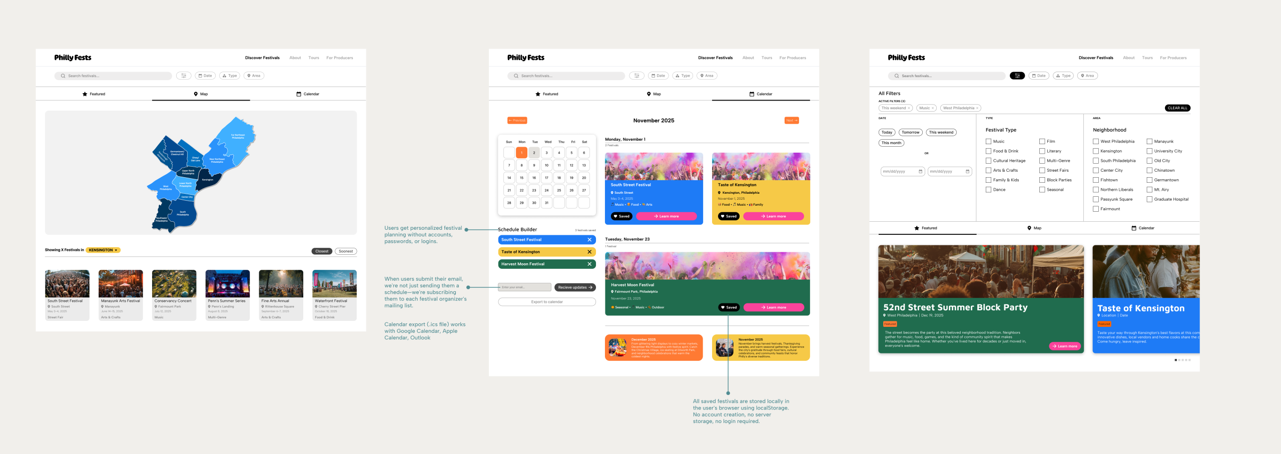 This clarified that Philly Festivals should first invest in discovery and information quality, not user accounts or heavy social features.