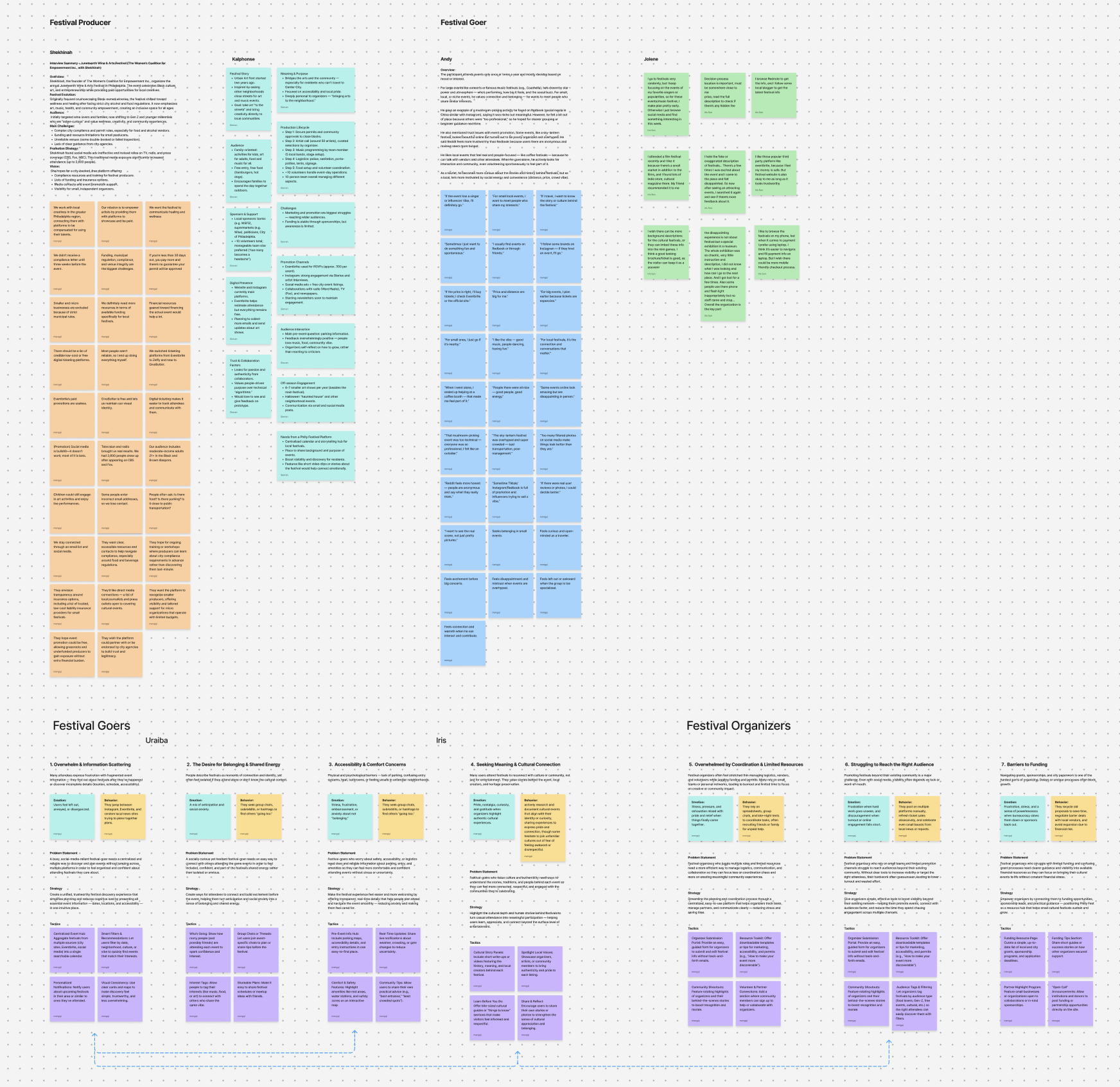 Based on the research insights and data patterns, we began brainstorming solutions that could address the core needs of both festival-goers and festival producers.