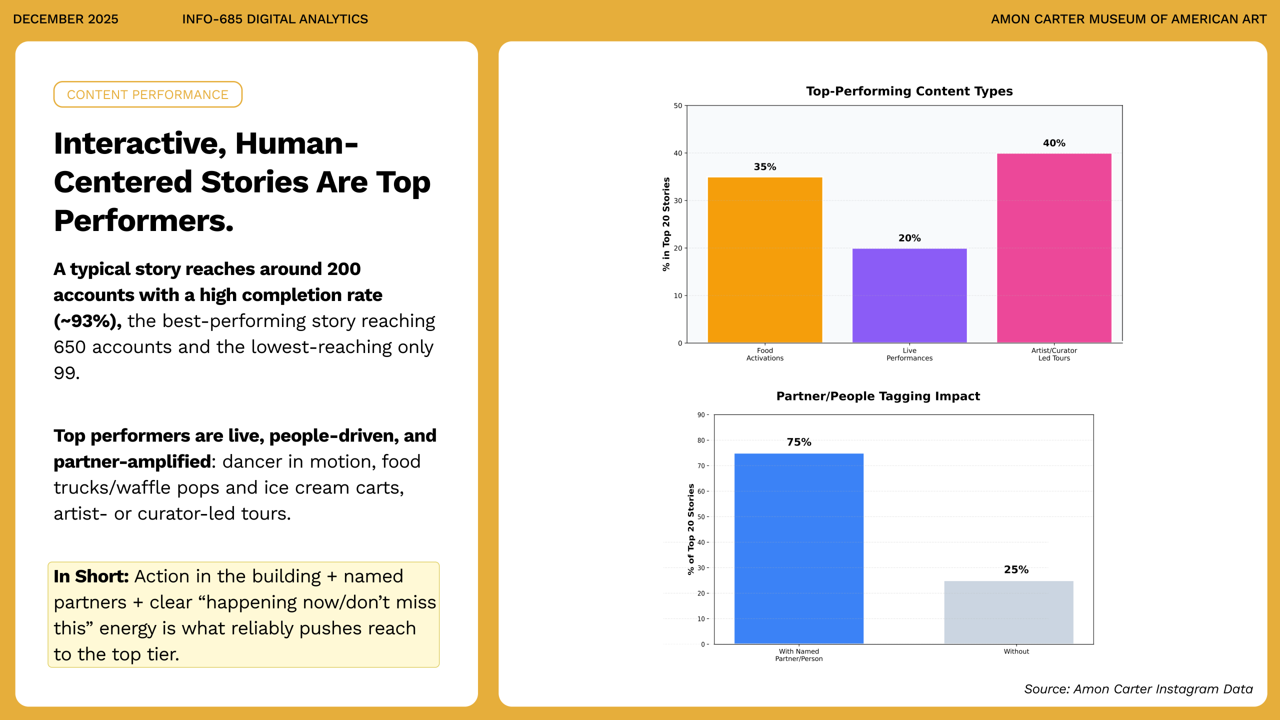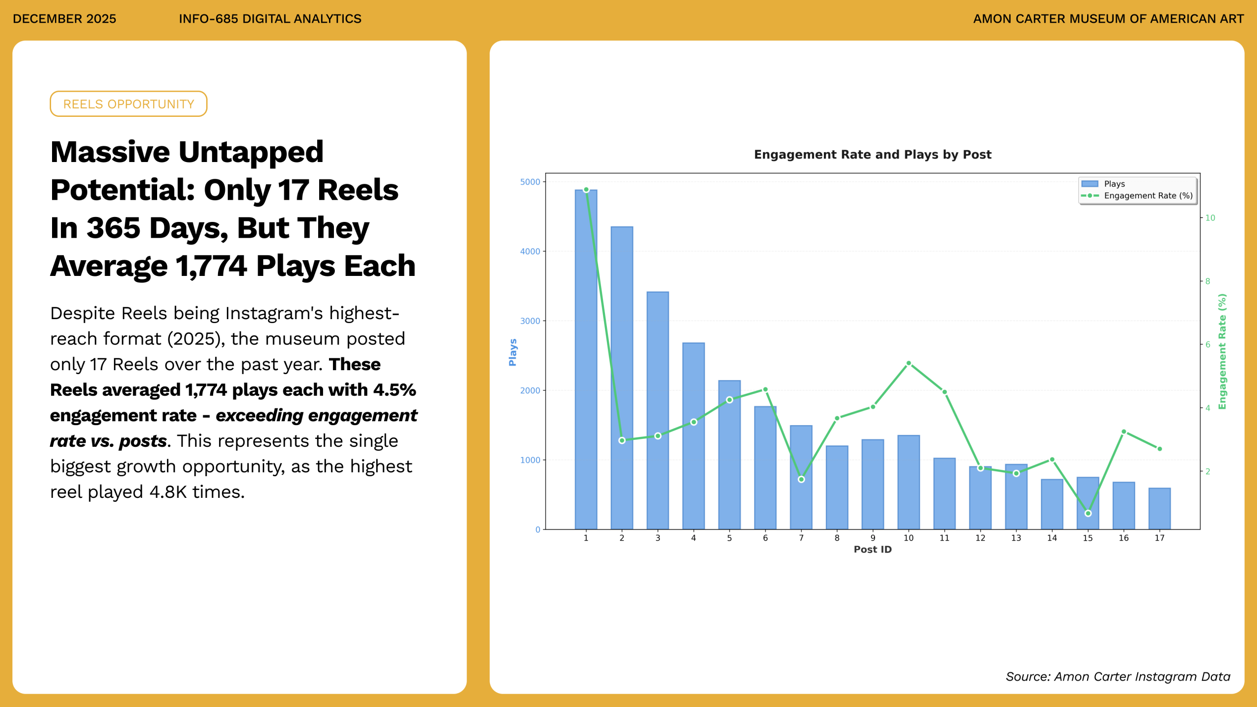 - The Missed Opportunity: Despite Reels being the highest-reach format, the museum had posted only 17 in a year . They were leaving their biggest megaphone in the closet.