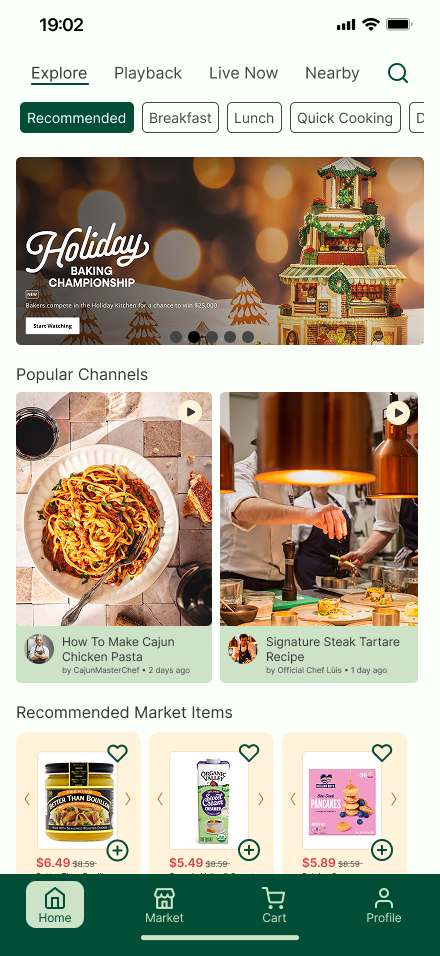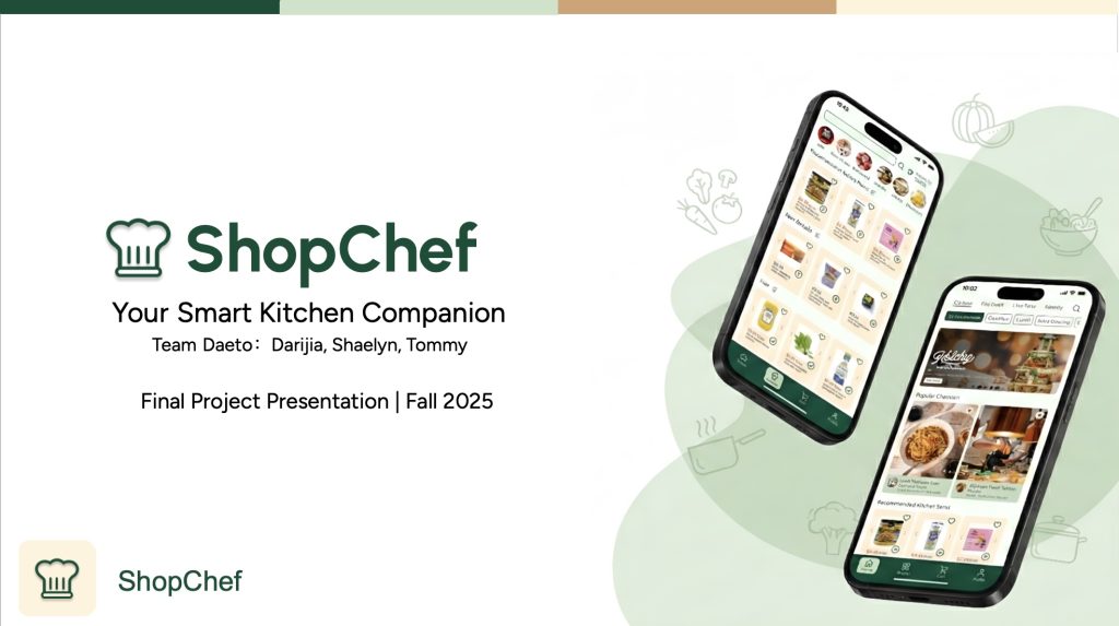 ShopChef is a livestream shopping platform that connects users directly with professional chefs, allowing them to buy food and ingredients both from an online marketplace and in real time through interactive cooking videos. Our team developed ShopChef after reflecting on what we share as young students and early-career professionals: a desire to cook better meals, paired with real barriers that often get in the way. Limited time, tight budgets, and the need for convenience make cooking feel inaccessible, while the lack of credibility and transparency among many food influencers makes it hard to trust what we see online. ShopChef responds to these challenges by combining trusted culinary expertise with an efficient, honest, and engaging shopping experience designed for our generation.