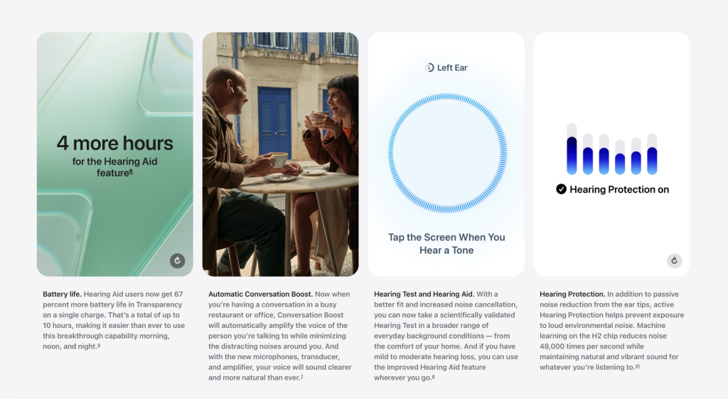 When compared with traditional assistive hearing devices, the distinction becomes clearer. AirPods, even with OTC hearing aid functionality, lack a level of clinical personalization and are not intended to replace prescription hearing aids for users with moderate to severe impairments. Instead, they function best as a supplemental or situational assistive tool. Additionally, despite being more affordable than traditional hearing aids, the cost of AirPods can still present a financial barrier, highlighting how accessibility in consumer technology often remains tied to affordability.