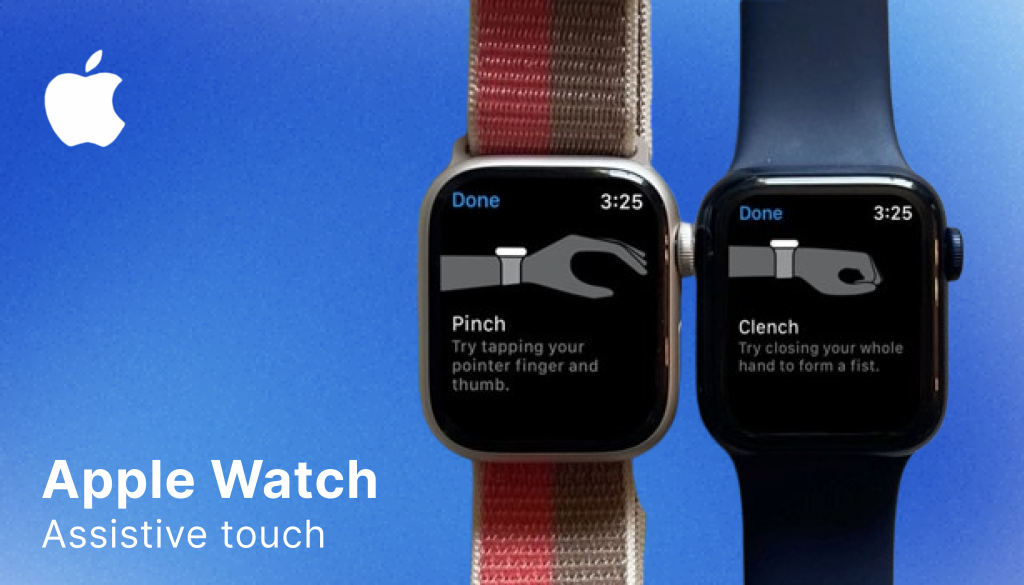 Apple Watch AssistiveTouch enables users to control their watch without touching the screen. Using built-in motion sensors, it detects subtle hand gestures, such as pinching or clenching, to navigate, select, and activate features. Designed for users with upper limb differences, it transforms wrist movement into a fully functional input method.