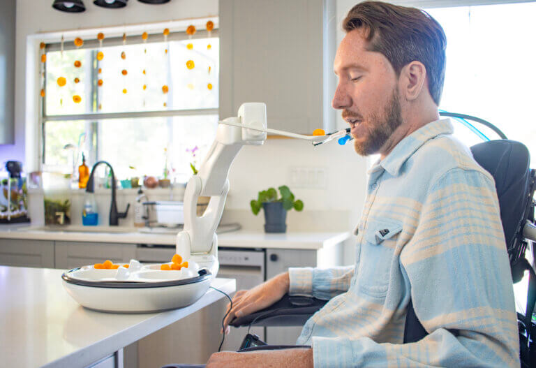 Obi also improves the experience of mealtime. The device allows people with disabilities to participate in meals with family or friends without needing someone else to feed them directly.