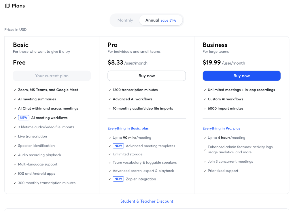 Otter.ai currently offers four different languages (two different versions of English), which can be helpful for some non-english speakers.