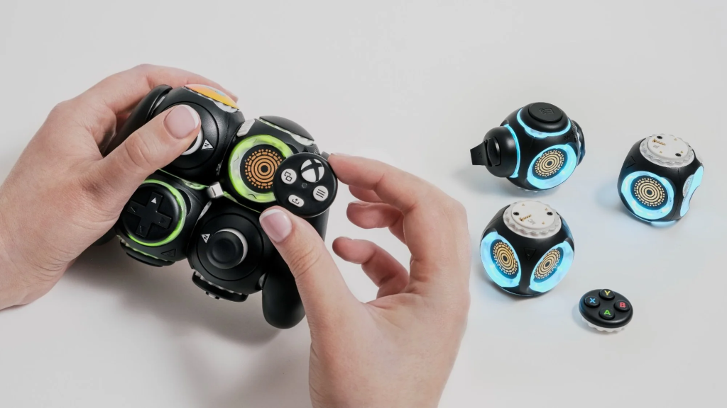 The defining feature of the Proteus controller is its modular structure. Instead of a fixed layout, it is built from separate components that can be arranged like building blocks. Players can choose where buttons go, whether clustered closely or spaced farther apart.