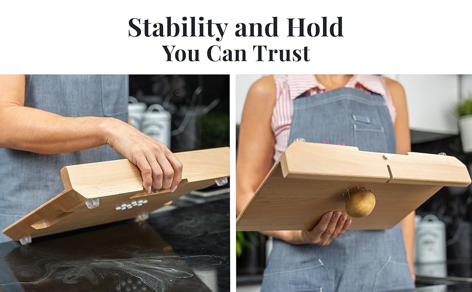 Under the board, there are finger recesses designed to make it easier to grip. By hooking their fingers under the grooves, users can lift and move the board around the kitchen using only one hand.