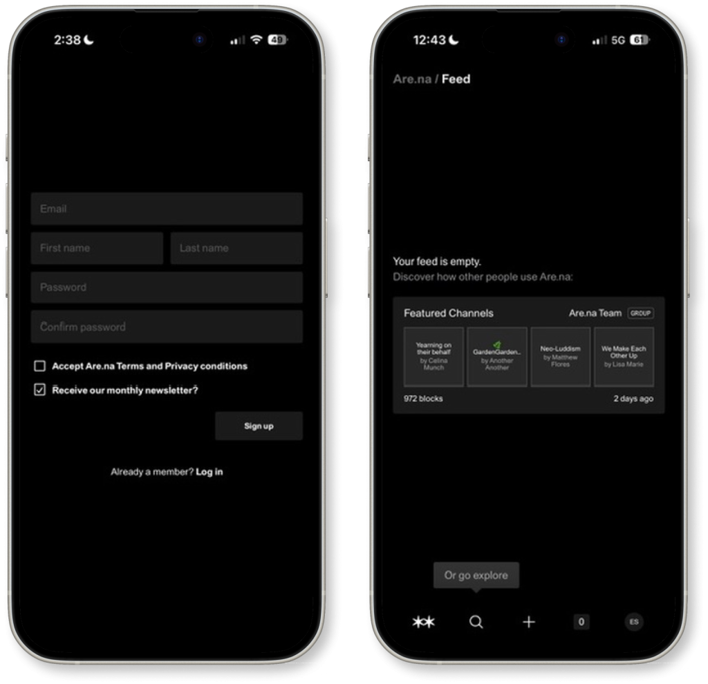 The first thing the user notices when they open Are.na is what isn’t there. No advertisements. No trending content. No engagement metrics competing for their eyeballs. This is deliberate restraint working as good design.