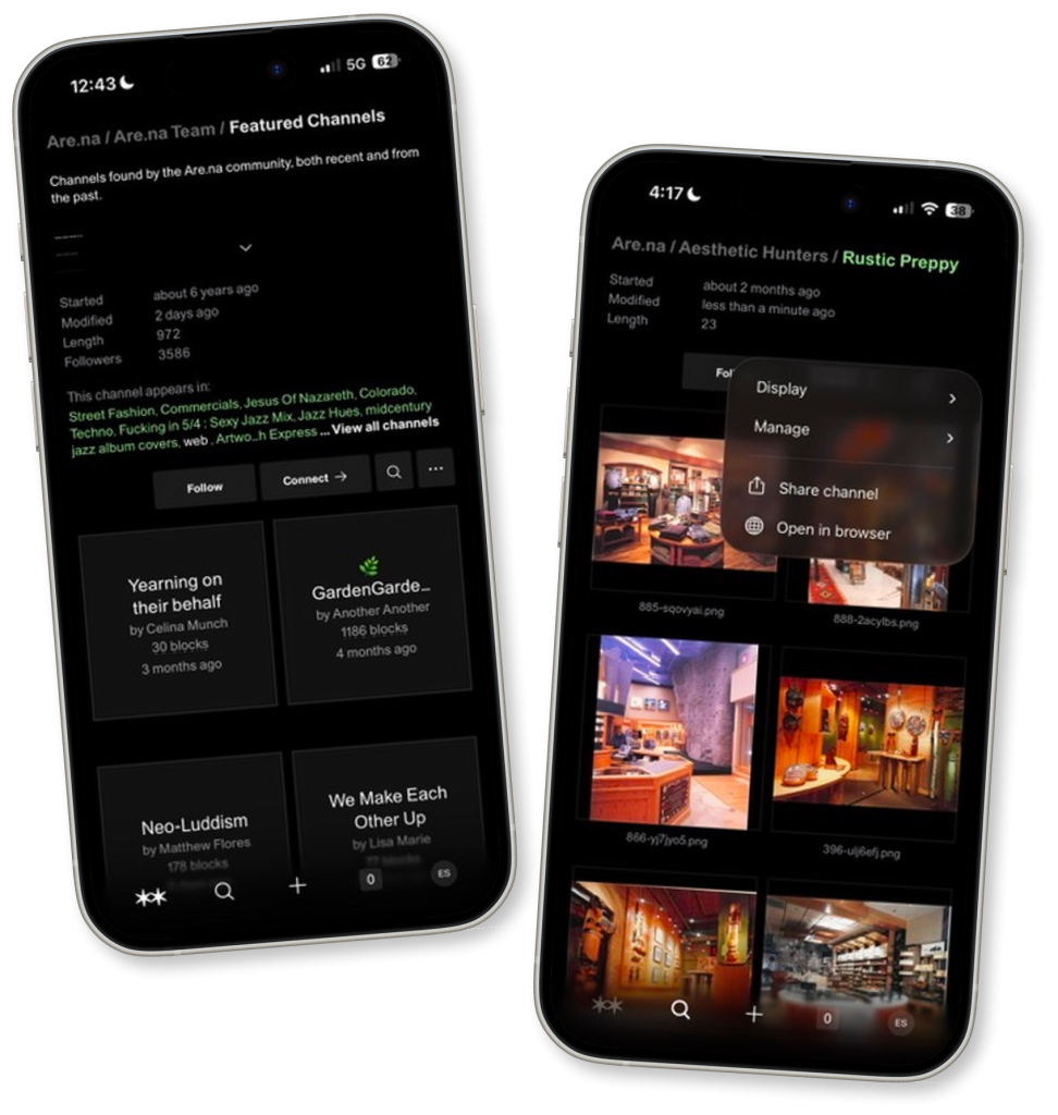 Maya is a 26-year-old graduate student in landscape architecture. She spends hours each week gathering references like images of gardens, botanical drawings, essays on ecological urbanism, and mood board material for studio projects. She’s tried Pinterest, but the algorithm keeps surfacing sponsored content and shopping posts that contaminate her research. A classmate recommends Are.na. Within minutes of signing up, Maya is hooked. The interface feels like a blank notebook rather than a social media feed. She begins building a channel called GardenGardenGarden — a growing archive of garden aesthetics, botanical photography, and writings on guarding nature.