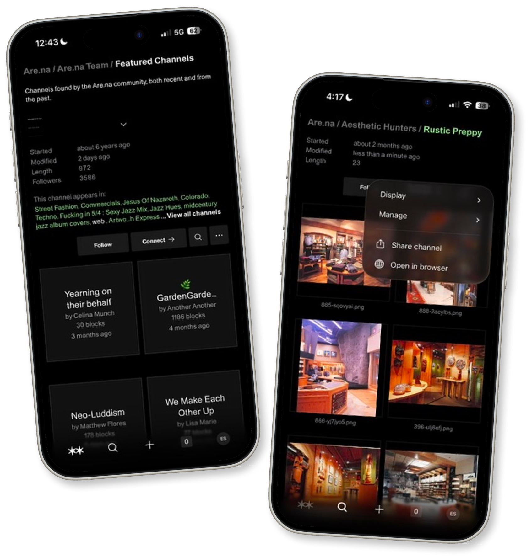 Maya is a 26-year-old graduate student in landscape architecture. She spends hours each week gathering references like images of gardens, botanical drawings, essays on ecological urbanism, and mood board material for studio projects. She’s tried Pinterest, but the algorithm keeps surfacing sponsored content and shopping posts that contaminate her research. A classmate recommends Are.na. Within minutes of signing up, Maya is hooked. The interface feels like a blank notebook rather than a social media feed. She begins building a channel called GardenGardenGarden — a growing archive of garden aesthetics, botanical photography, and writings on guarding nature.