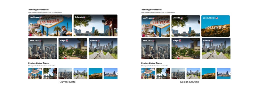 Similar elements (all destination recommendations) should use consistent visual formats. Identical size and style create clear visual groupings, allowing users to immediately understand “these are options of the same category.”