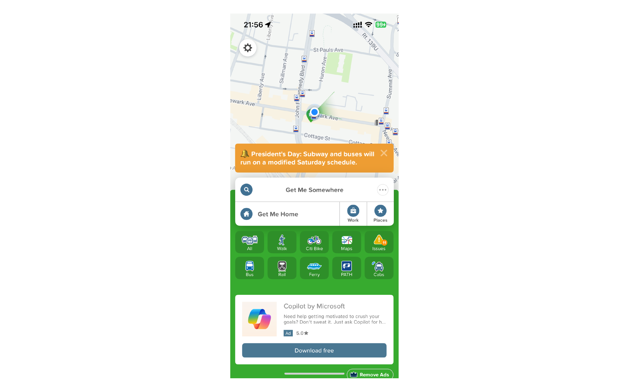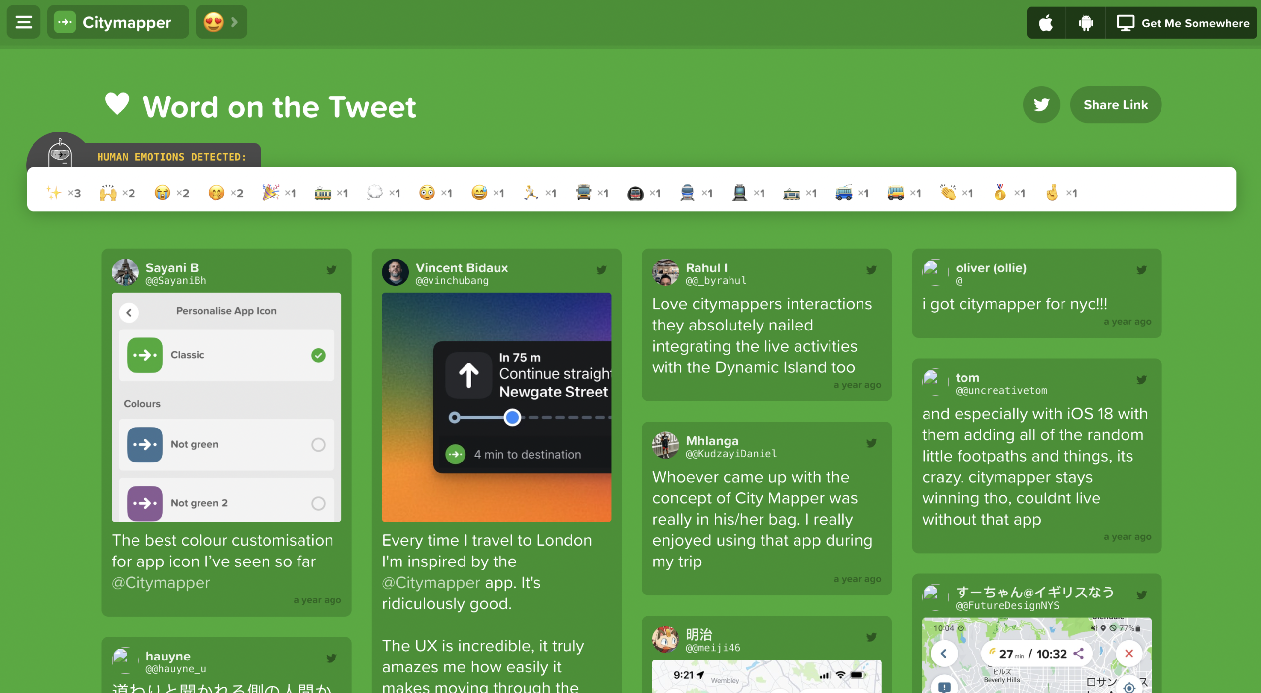 Citymapper’s homescreen uses affordances and signifiers well. The primary search bar with its labelled prompt “Get Me Somewhere” signals the action of what the system affords, clearly reducing ambiguity when the user begins navigating. Quick-access buttons for “Home”, “Work”, and “Places” enable users to act and function quickly with re-entering information- utilizing recognition rather than recall. The entire spatial layout aligns well with user intent, eventually minimizing the gulf of execution by making the primary action for the user which is starting a journey, immediately visible.