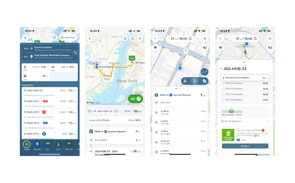 Citymapper excels at active navigation by providing continuous feedback and reflecting the visibility of system status. The interface continuously communicates the navigation status and updates itself along with the user’s movements through countdowns, live arrival times, stop counts and clear “Get off now” prompts. These cues reduce user anxiety by confirming timely updates and tracking the live journey.