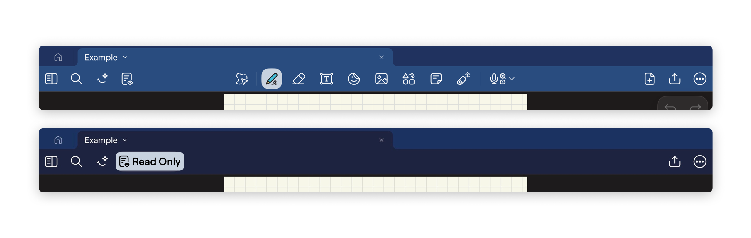 After receiving feedback during their gulf of evaluation, the user is not able to achieve their goal of taking notes. At this point, the user may revisit the planning stage within the seven stages of the action cycle. Their goal remains the same, but scanning the screen again, they might notice knowledge in the world: an icon and copy that states “Read Only.”