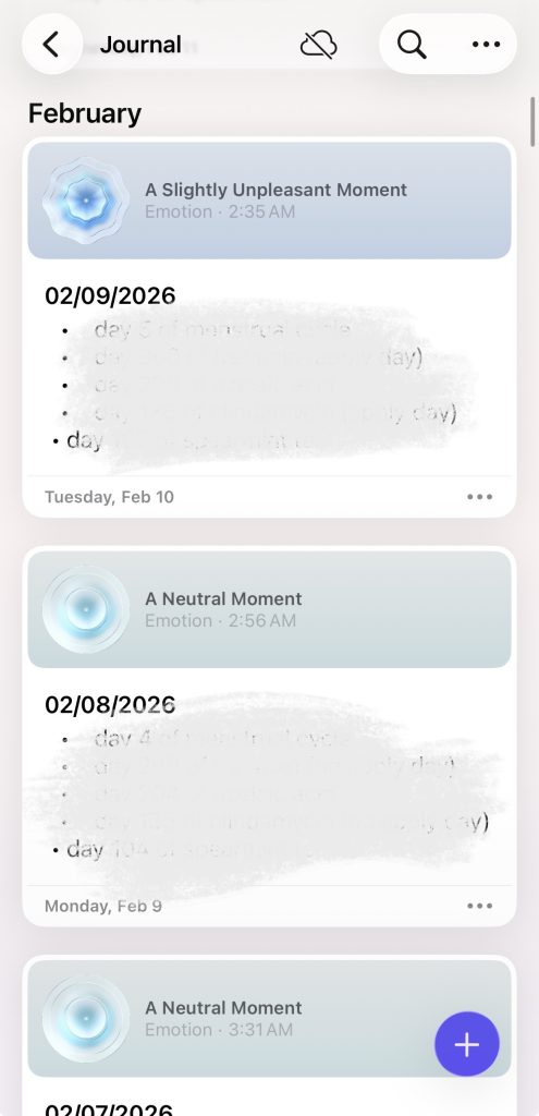 Journal usually provides clear feedback, especially when saving entries. As users type, their text is automatically saved, and exiting the entry does not trigger anxious thoughts about whether an entry has been saved or not. This supports Norman’s principle of reducing memory load and aligns with the concept of knowledge in the world rather than knowledge in the head.