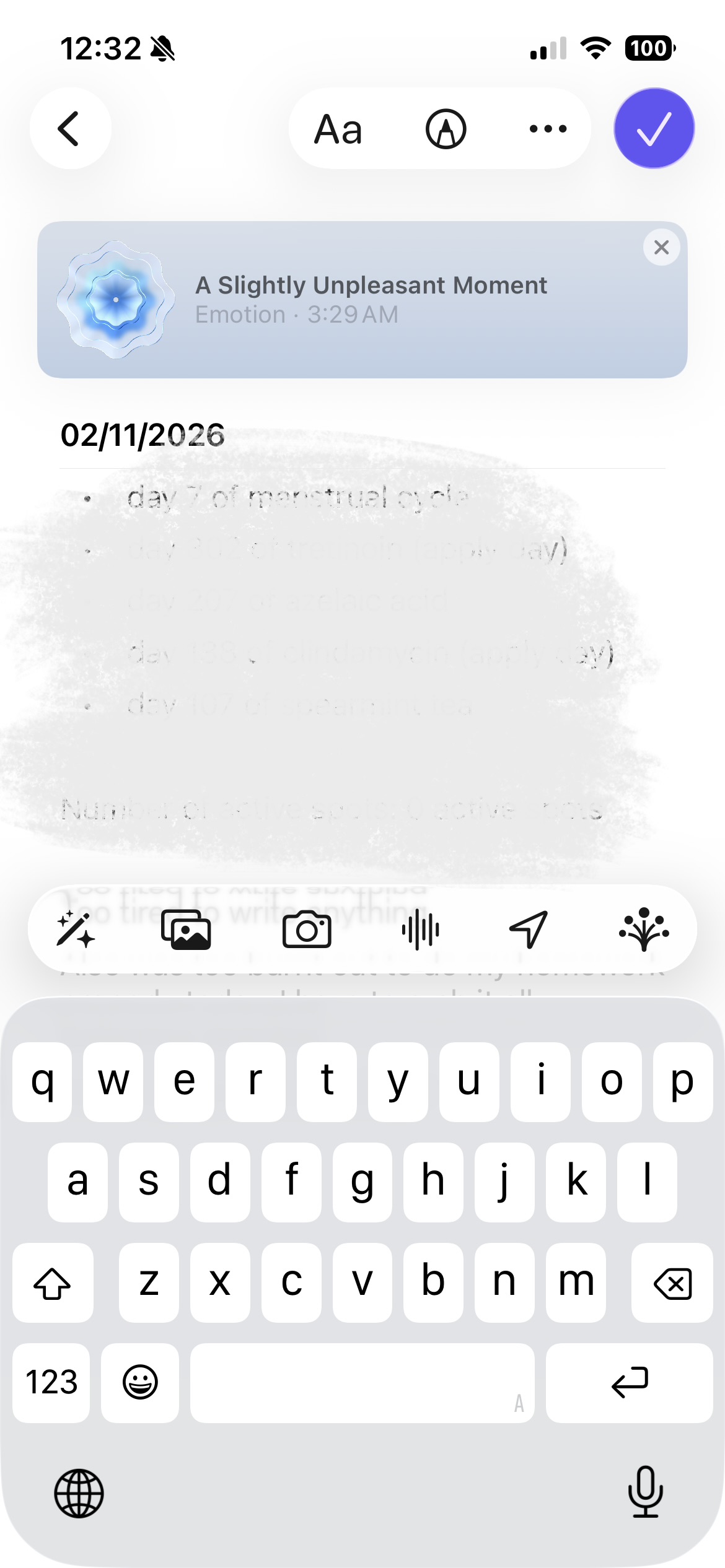 Journal relies heavily on algorithm suggestions (when Journal Suggestions setting is enabled), prompting users to write based on recent activities. While this may reduce the gulf of execution by helping users decide what to write about, it also introduces a problematic constraint of over-suggesting. Suggestions dominate the entry creation flow, subtly nudging users toward certain types of content (photos, workouts, locations) over true free-form reflection.