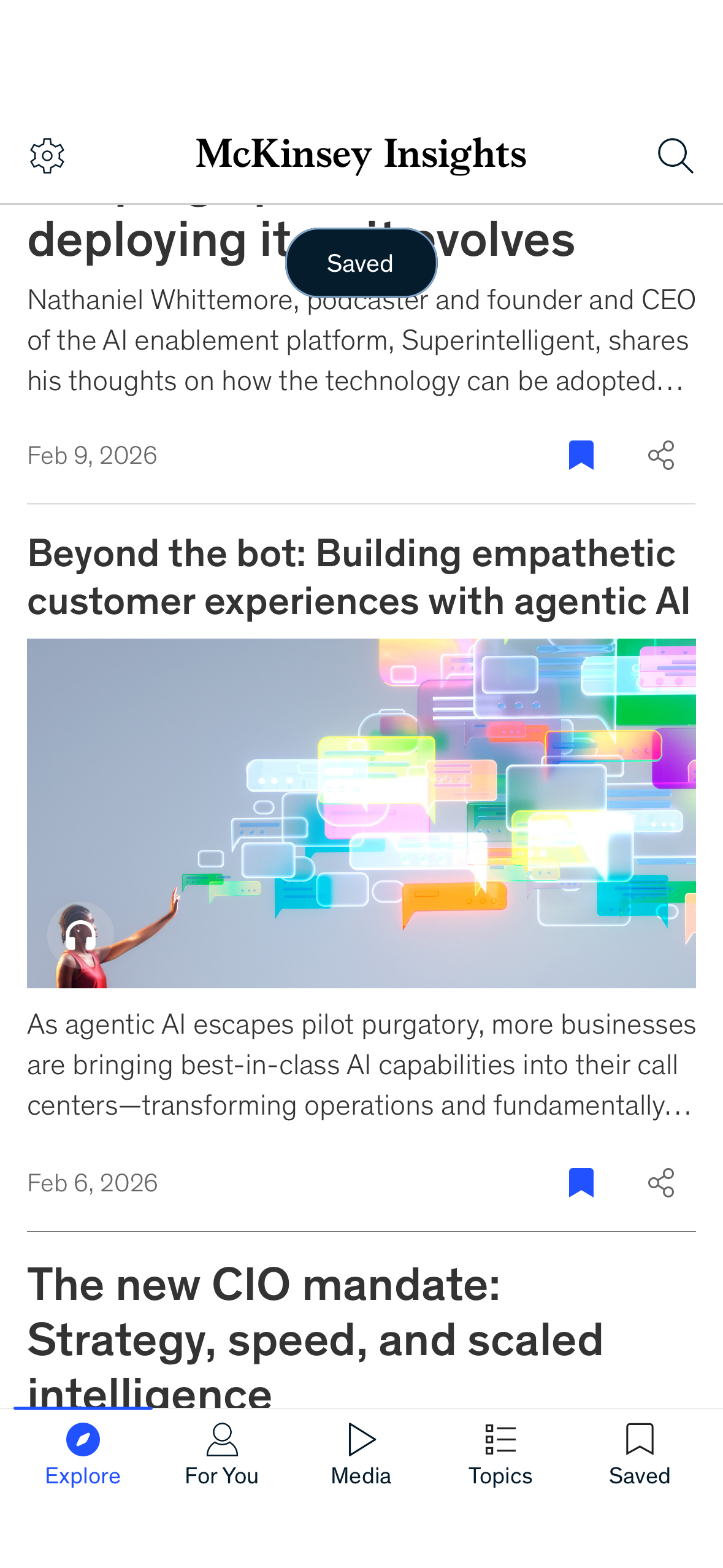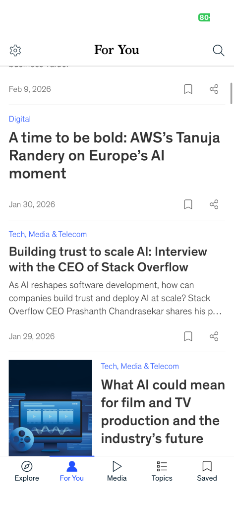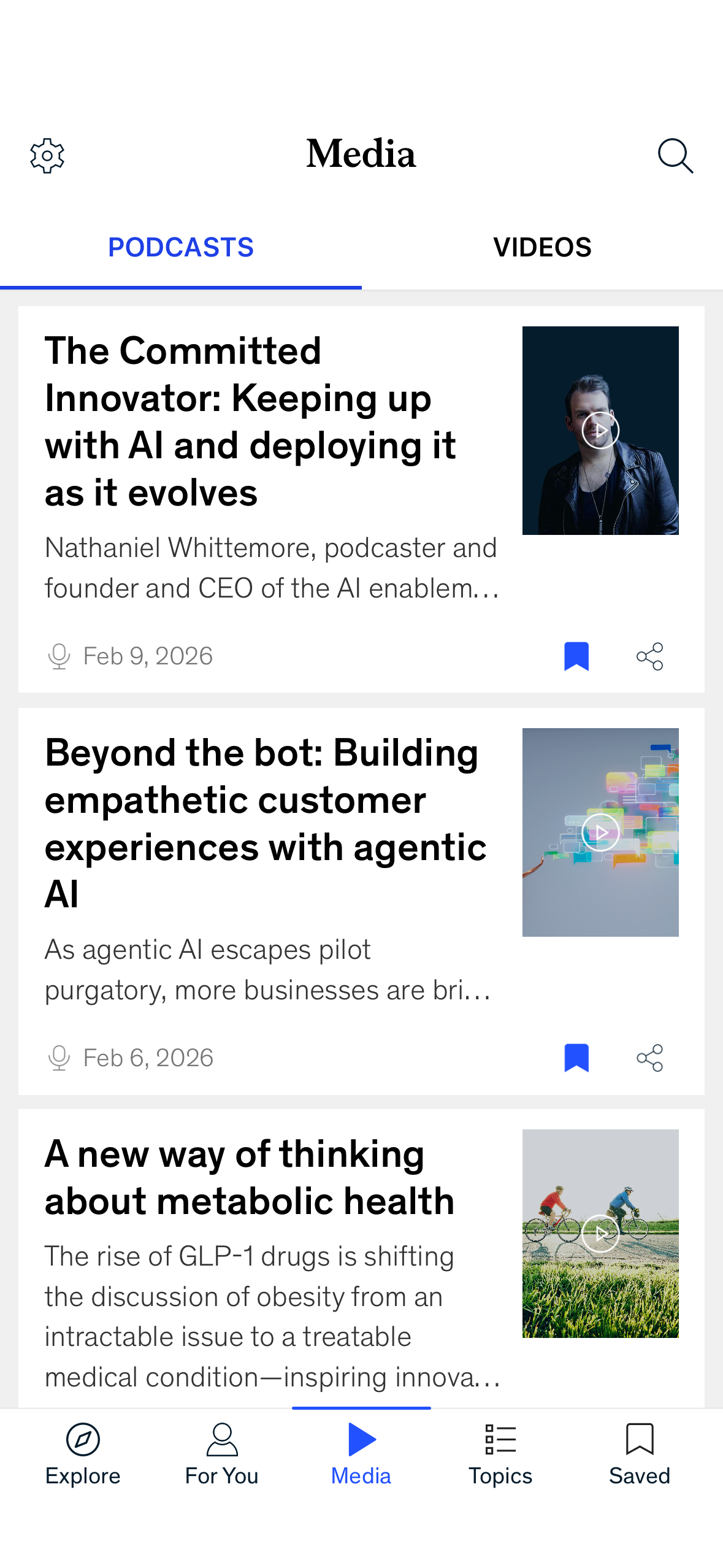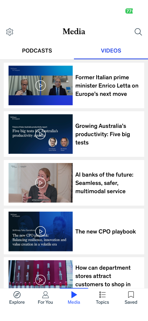 Another area where the app feels slightly less intuitive is the Media tab. On paper, this section is a great idea because McKinsey offers podcasts and videos alongside written reports. However, the way the Media page is structured creates a small disconnect between what users expect and what the interface provides.