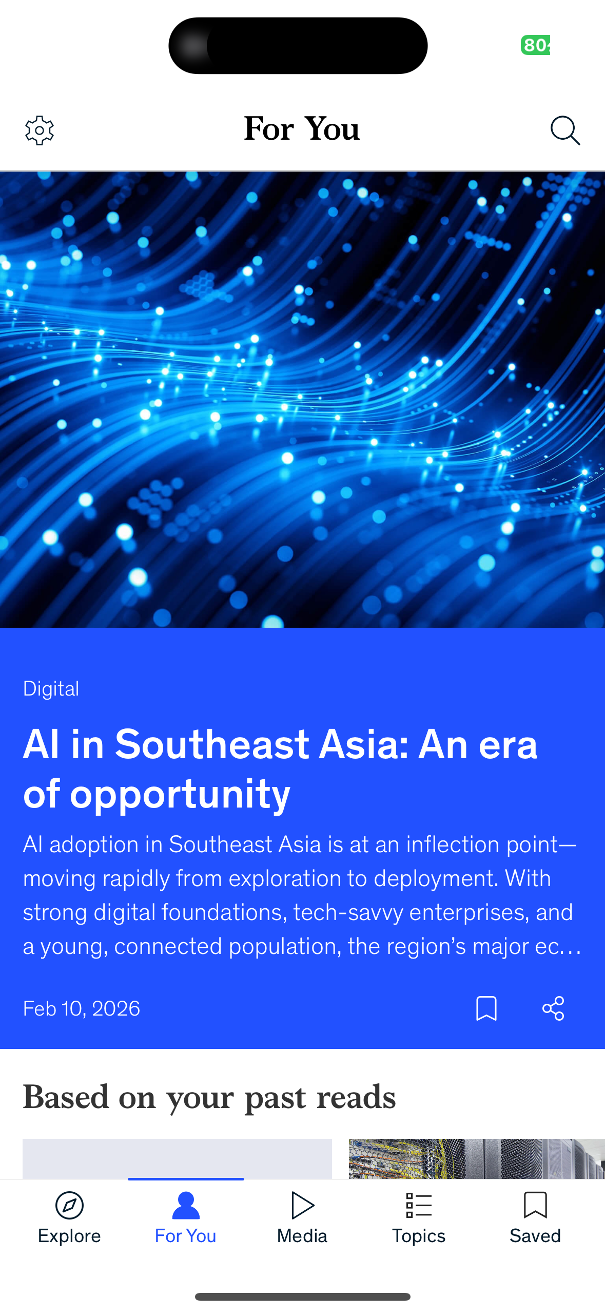 One of the best parts of the app is the Explore feed. The interface uses a clean visual hierarchy where the most important content is immediately visible. The featured article appears with a large image and bold headline, which acts as a strong signifier that this is the primary story to engage with first. The card layout also creates a clear affordance. As a user, I can instantly tell what is tappable and what will lead me deeper into the content.