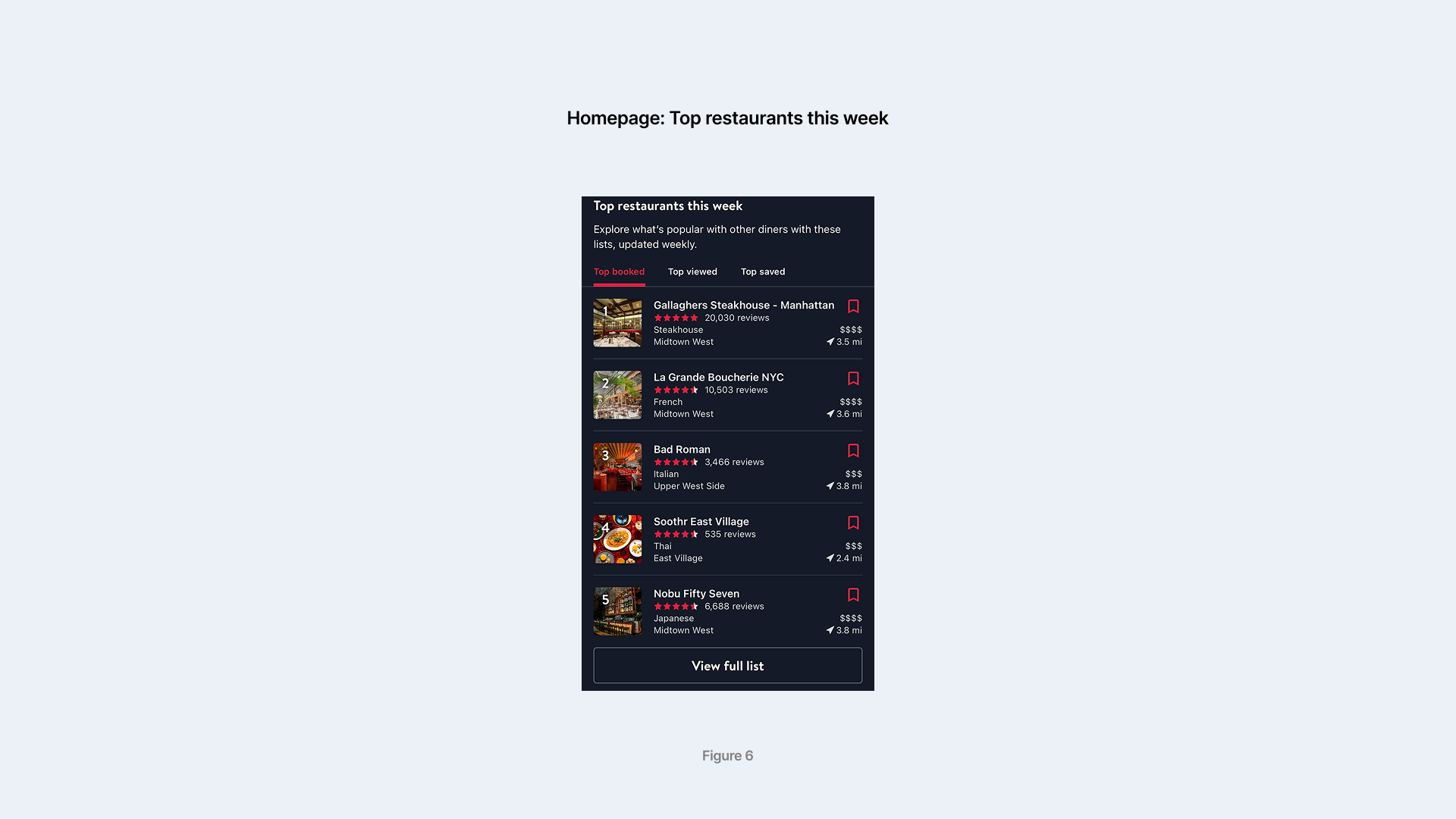 Homepage: Top restaurants this week