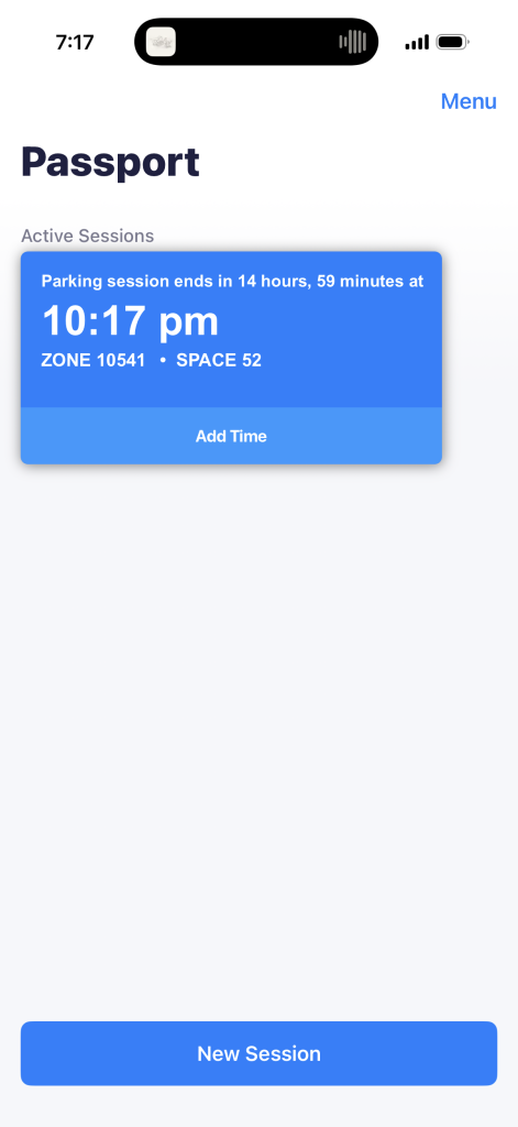 After payment is collected the user’s parking session is displayed within the app and acts similarly to a receipt you may receive in a parking garage. This is both a strong signifier and feedback that the task has been completed. At this point we could say the user has crossed the Gulf of Evaluation as they now have the confidence that they successfully achieved their goal of paying for their parking spot.