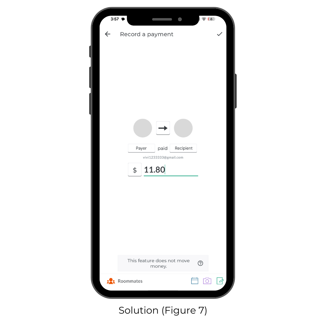 The Settle Up screen (Figure 6) uses excellent natural mapping. By placing profile pictures on opposite sides of a central arrow, the interface creates a clear spatial relationship that represents the flow of money.